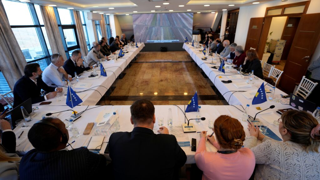Prishtinë, 11 Mars 2026 – Ministri i Ministrisë së Bujqësisë, Pylltarisë dhe Zhvillimit Rural, Armend Muja, sot mori pjesë në punëtorinë e organizuar në kuadër të Projektit IRIS – Përmirësimi dhe Rehabilitimi i Sistemeve të Ujitjes. Ky projekt mbështetet nga Bashkimi Evropian dhe Ministria e Bujqësisë, Pylltarisë dhe Zhvillimit Rural dhe synon rritjen e efikasitetit të ujitjes, si dhe rritjen e produktivitetit në sektorin bujqësor.